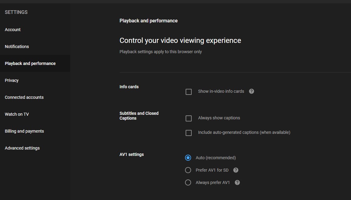 It is so easy to do that. If you don’t want to see annotations (or cards) for any video whatsoever, you can disable all interactive elements by heading to settings, clicking on Playback from the Account Settings panel on the left, and then unchecking the box for “Show in-video info cards”