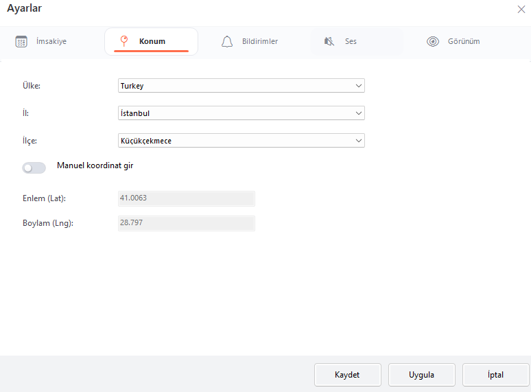 NamazVaktiApp.exedosyasına çift tıklayın - Konum Seçin: İlk açılışta konumunuzu seçin