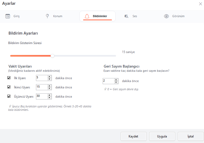 - ⏰ Akıllı Bildirimler: 3 bağımsız uyarı sistemi (5-20-45 dakika kala gibi)