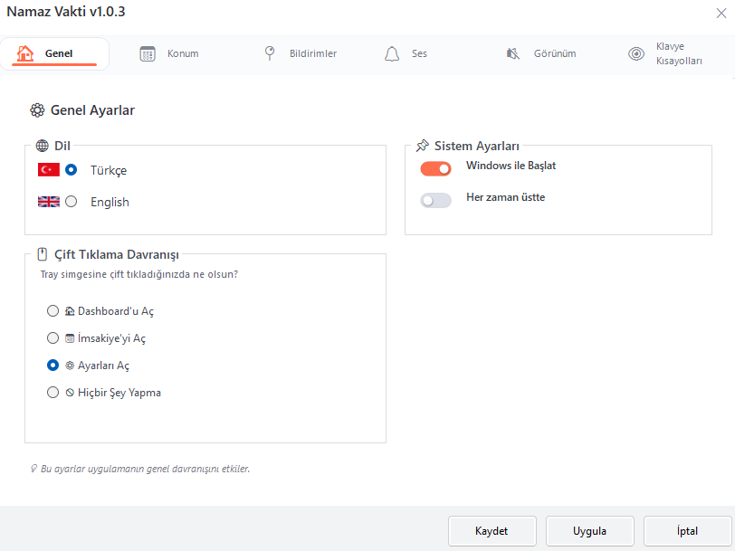 - ⌨️ Klavye Kısayolları: 11 Ctrl+ kombinasyonu (Dashboard, İmsakiye, Ayarlar, vb.)